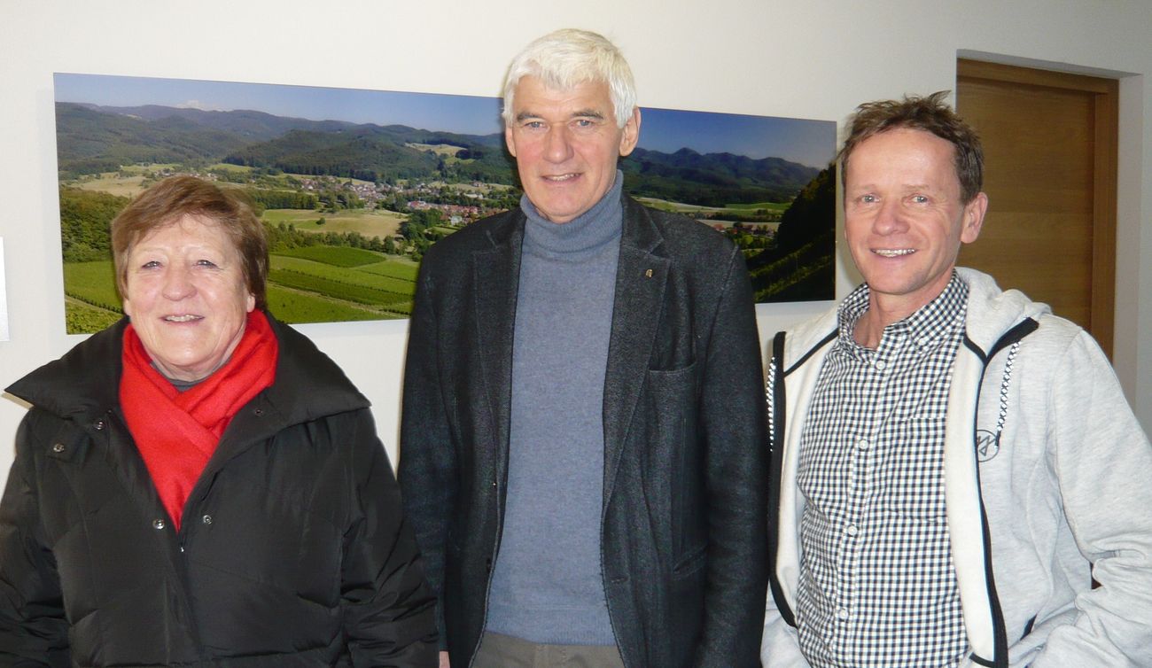 Gemeinderätin Maria Munsel, Bürgermeister Josef Schweizer und Vorsitzender Gerhard Kelter im Rathaus Bollschweil