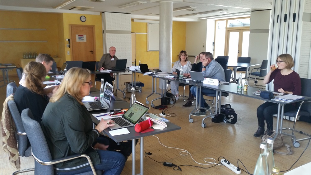 Konzentriertes Arbeiten der neun TeilnehmerInnen beim Seminar in Bühl zu Öffentlichkeitsarbeit in Sozialen Mediun. Soziale Medien spielen eine zunehmend große Rolle in der politischen Kommunikation. In einem Seminar der Fritz-Erler Forums Baden-Württemberg wurde gezeigt, welche Instrumente sich für welche Ziele eignen, wie man effektiv und effizient mit Blogs, Facebook und Twitter arbeiten und wie man die jeweiligen Risiken minimieren kann. Anhand von praktischen Übungen und konkreten Beispielen wurde ein kenntnisreicher und professioneller Umgang mit sozialen Medien erprobt. Geleitet wurde das Seminar von der Medienwissenschaftlerin Ute Pannen aus Berlin. Gerhard Kelter vom OV Ehrenkirchen-Bollschweil hat das Seminar besucht und berichtet über seine Eindrücke.