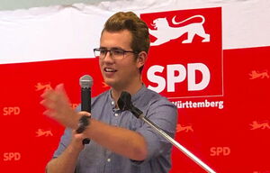 Der Emmendinger Juso-Landesvorsitzende Pavlos Wacker sprach bei der Kreisdelegiertenkonferenz der SPD in March-Neuershausen.