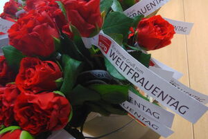Wir haben heute Morgen an den Bahnhöfen Müllheim, Bad Krozingen und Breisach Rosen verteilt, wie jedes Jahr. Weil sich die Frauen darüber freuen, insbesondere die älteren. Und die jüngeren lernen, dass es einen Internationalen oder auch Weltfrauentag gibt. Und freuen sich dann auch.