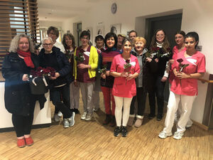 Wir haben heute traditionell an den Internationalen Frauentag mit Rosen erinnert. Das ist natürlich nur eine kleine Aufmerksamkeit und ersetzt in keinster Weise den Kampf für echte Gleichberechtigung zum Beispiel was gleiches Geld für gleiche Arbeit angeht.
